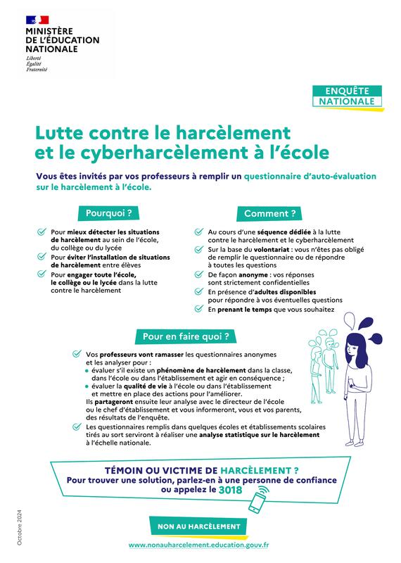 La lutte contre le harcèlement à l'École : la circulaire « Lutter contre le harcèlement à l'École, une priorité absolue » détermine l’organisation de la prévention et de la réponse à apporter.